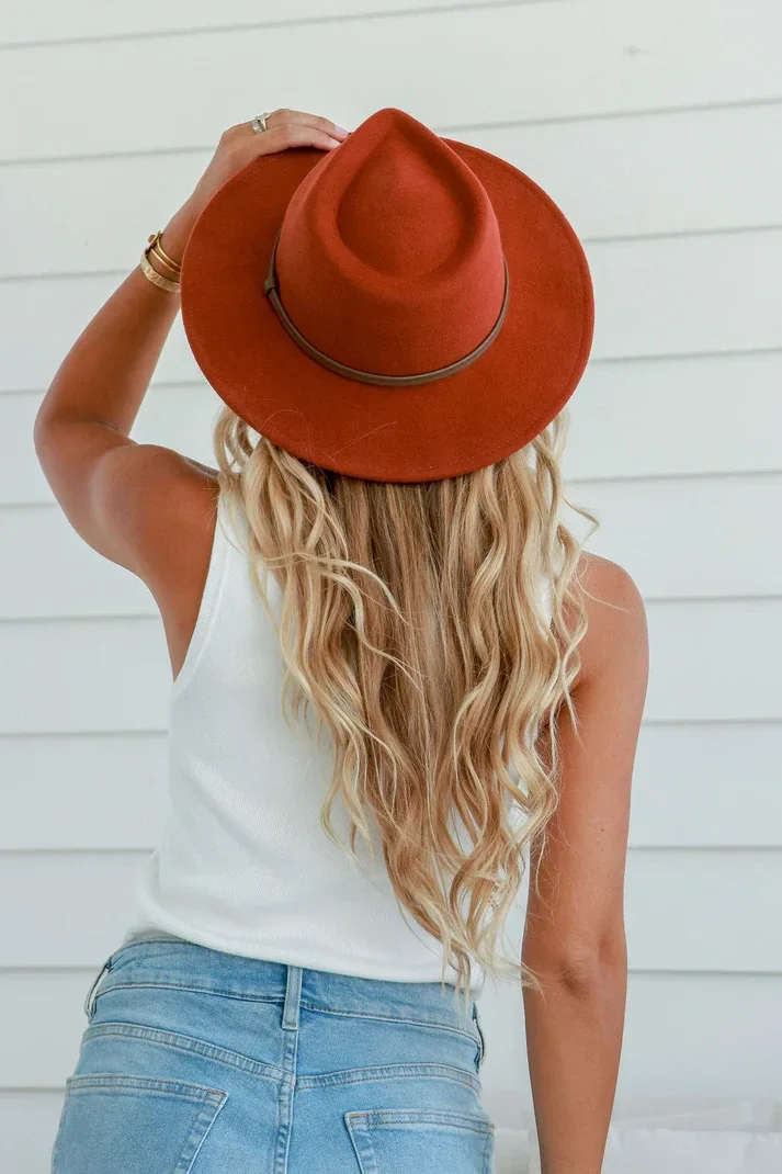 Terracotta - 100% wool, crushable with drawstring adjustment.