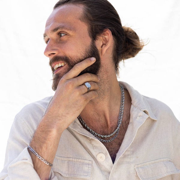 Pure Steel is highly polished 316 steel. Gold items are plated with 14K Gold. We always use IP plating, the most durable plating process. IP plating is commonly used on watches. Perfect jewellery to wear everyday, whatever you do.