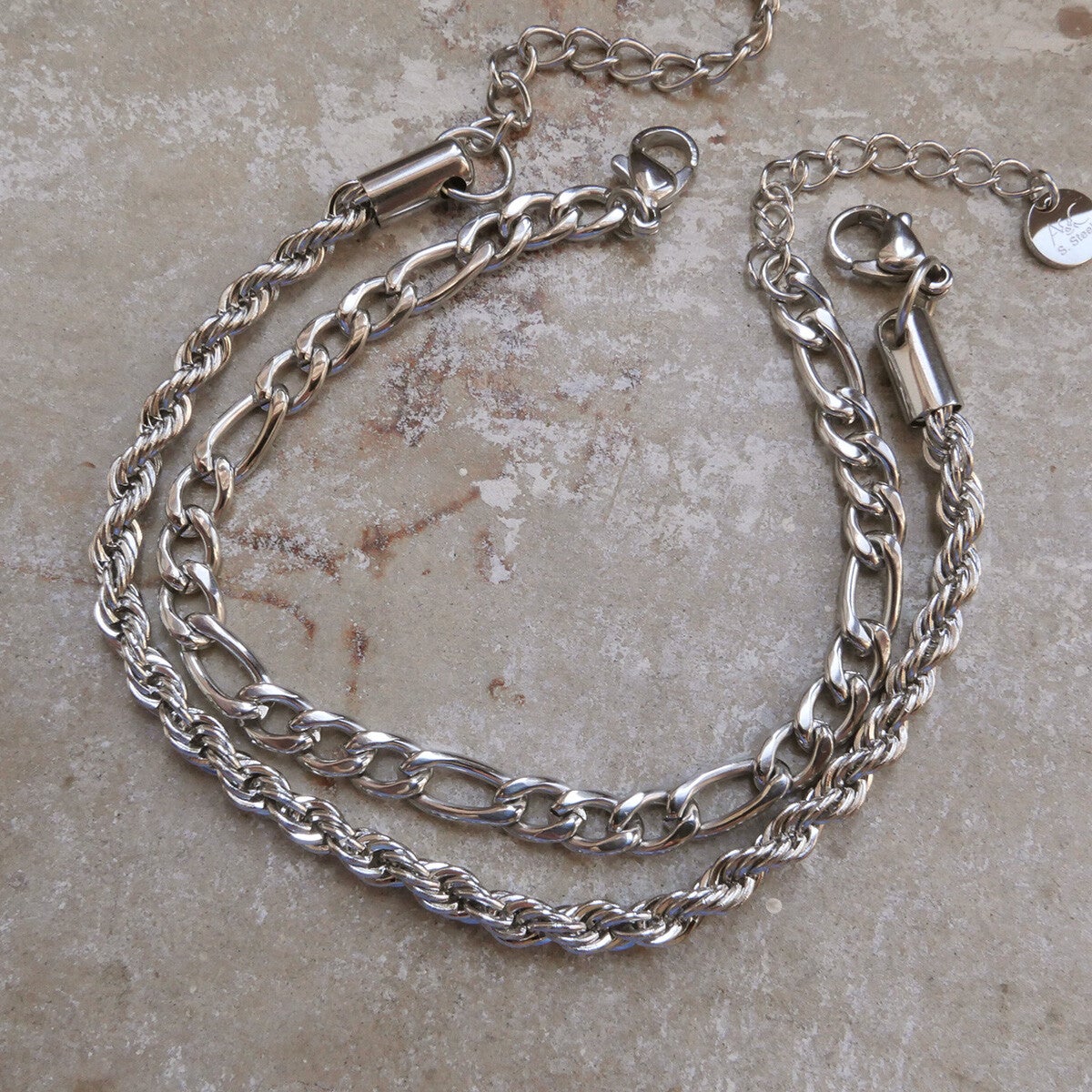 Figaro Bracelet, Silver Look Steel, Unisex