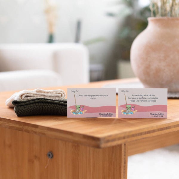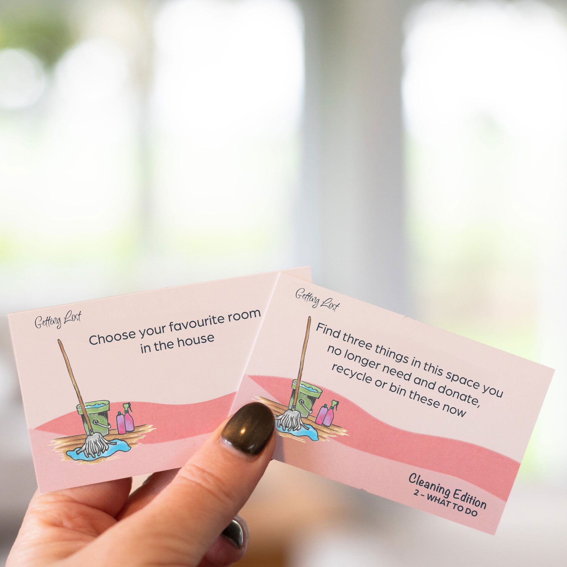 The Getting Lost Cleaning Edition has 900 possible cleaning combinations - all designed to be fun, quick and make a difference to your spaces. Play one card when you have a spare 10 minutes, or block out more time and play multiple cards.